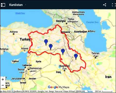 One of the enduring frictions in that woebegone neighborhood of the world is the 30 million strong nation of Kurdistan which doesn’t have a state, but is spread among Turkey (12 million), Iran (6 million), Iraq (6 million) and a small sliver of population (2 million)and territory in northeastern Syria.