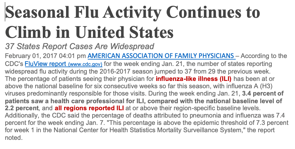 Pay close attention when you read accurate reports about the flu. When you read about the flu or hear news broadcasts about flu outbreaks, you are really seeing and hearing about ILI.